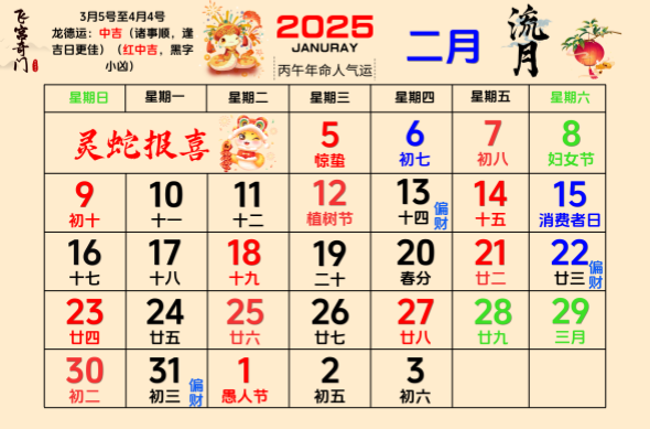 以下挂历是以奇门遁甲文化为核心,再根据1965(蛇)年出生人的生年来计算2025流年中12月的气运,再通过12个月计算出每个月30天的气运,然后将气运完整的体现在挂历上,从而让1965年出生的人士、能准确无误的掌握未来的好运与财富。